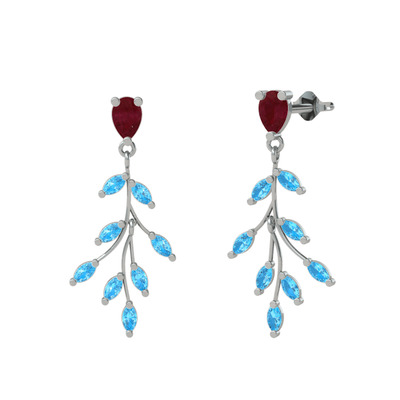 Kök yakut ve akuamarin 8 ayar beyaz altın küpe