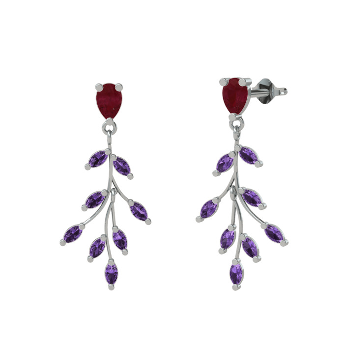 Kök yakut ve ametist 18 ayar beyaz altın küpe