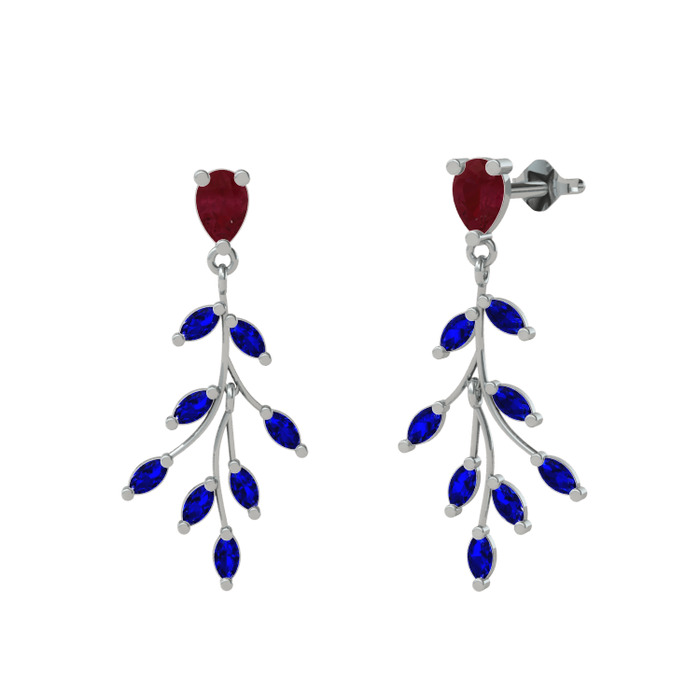 Kök yakut ve lab safir 8 ayar beyaz altın küpe