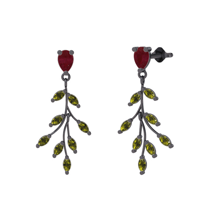 Kök yakut ve peridot 925 ayar siyah rodyum kaplama gümüş küpe