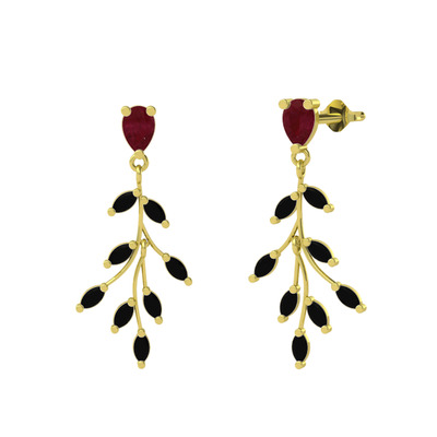 Kök yakut ve siyah zirkon 925 ayar altın kaplama gümüş küpe