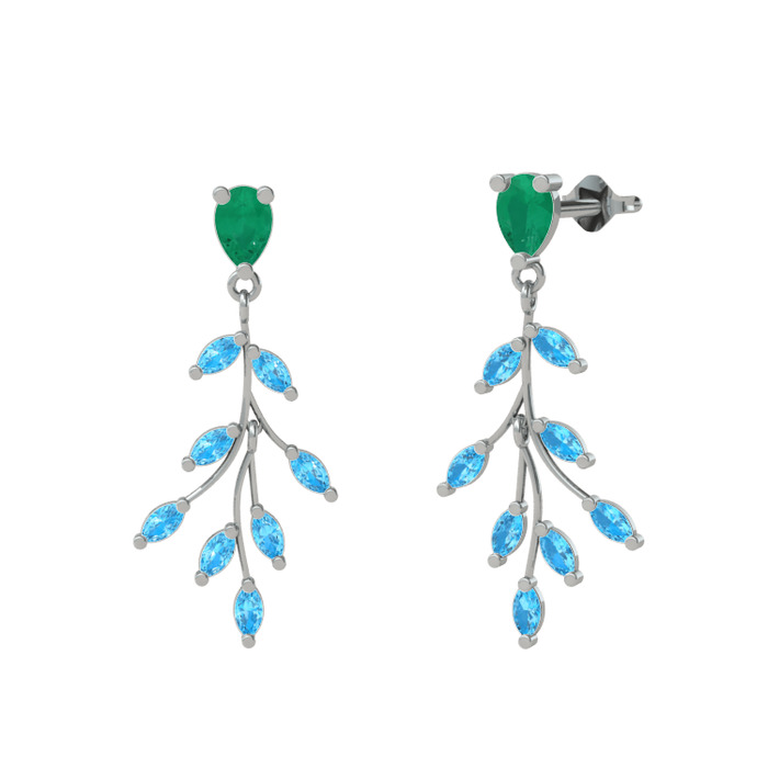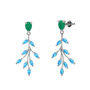 Dentale Yaprak Küpe - Kök zümrüt ve akuamarin 14 ayar beyaz altın küpe