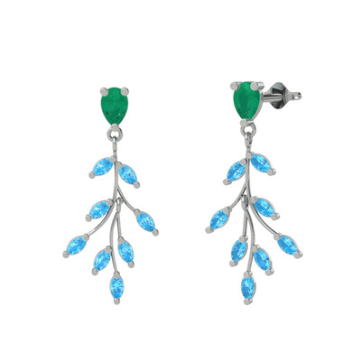 Kök zümrüt ve akuamarin 14 ayar beyaz altın küpe