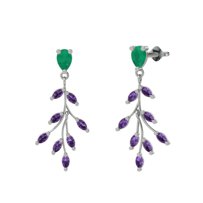Kök zümrüt ve ametist 925 ayar gümüş küpe