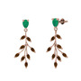 Kök zümrüt ve dumanlı kuvars 8 ayar rose altın küpe