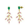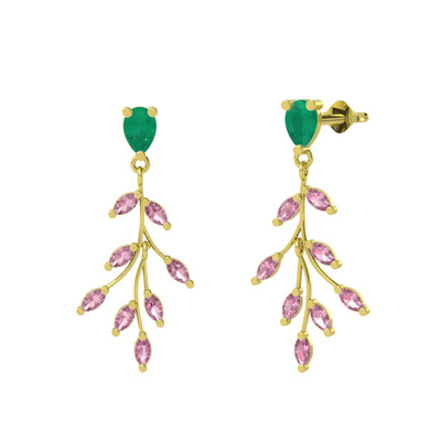 Kök zümrüt ve pembe kuvars 925 ayar altın kaplama gümüş küpe