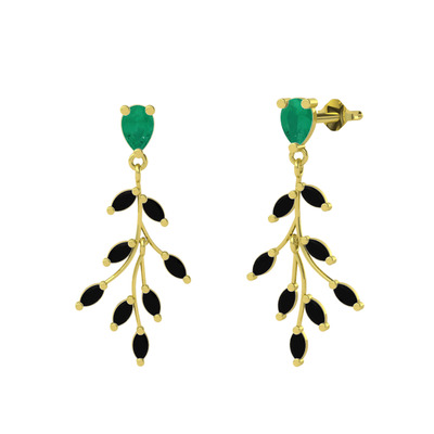 Kök zümrüt ve siyah zirkon 14 ayar altın küpe