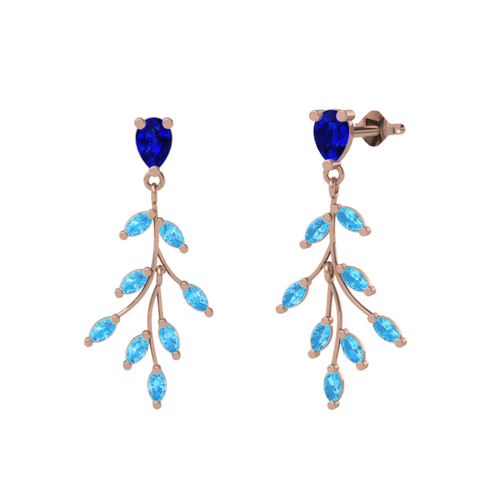 Lab safir ve akuamarin 925 ayar rose altın kaplama gümüş küpe