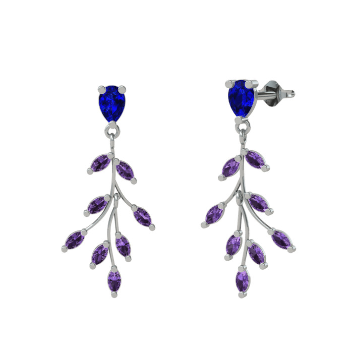 Lab safir ve ametist 14 ayar beyaz altın küpe