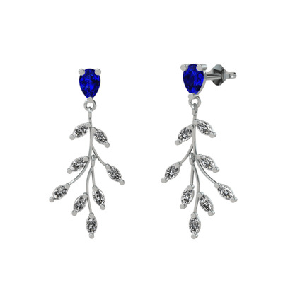 Lab safir ve beyaz zirkon 18 ayar beyaz altın küpe