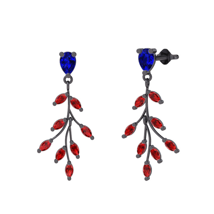 Lab safir ve garnet 925 ayar siyah rodyum kaplama gümüş küpe