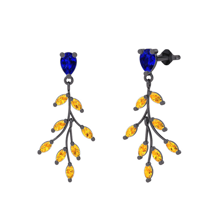 Lab safir ve sitrin 925 ayar siyah rodyum kaplama gümüş küpe