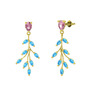Pembe kuvars ve akuamarin 18 ayar altın küpe