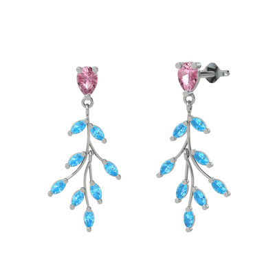Pembe kuvars ve akuamarin 8 ayar beyaz altın küpe