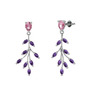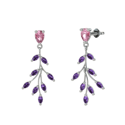 Pembe kuvars ve ametist 8 ayar beyaz altın küpe
