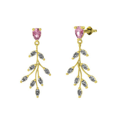 Pembe kuvars ve beyaz zirkon 925 ayar altın kaplama gümüş küpe