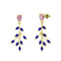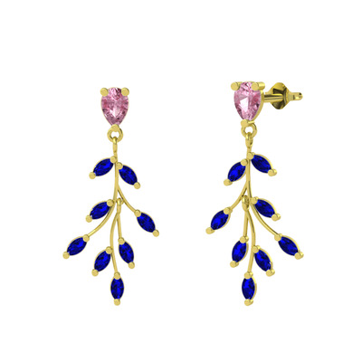 Pembe kuvars ve lab safir 925 ayar altın kaplama gümüş küpe