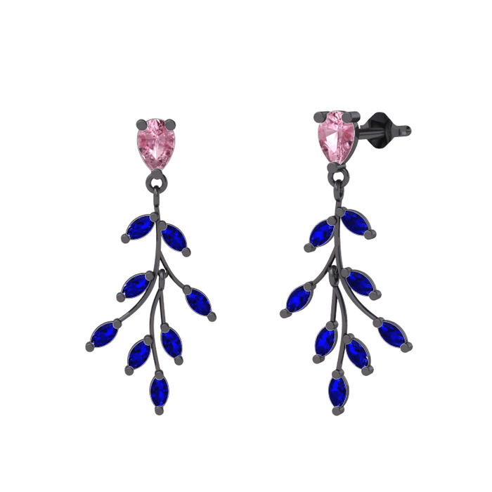 Pembe kuvars ve lab safir 925 ayar siyah rodyum kaplama gümüş küpe