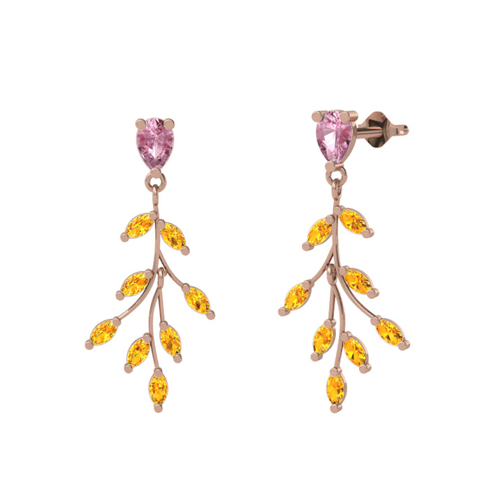 Pembe kuvars ve sitrin 8 ayar rose altın küpe