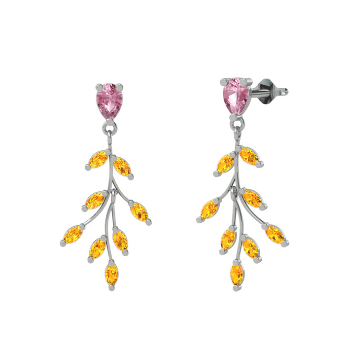 Pembe kuvars ve sitrin 925 ayar gümüş küpe