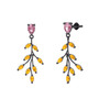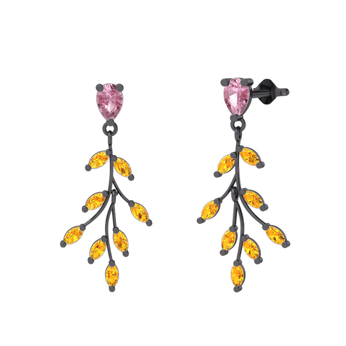 Pembe kuvars ve sitrin 925 ayar siyah rodyum kaplama gümüş küpe