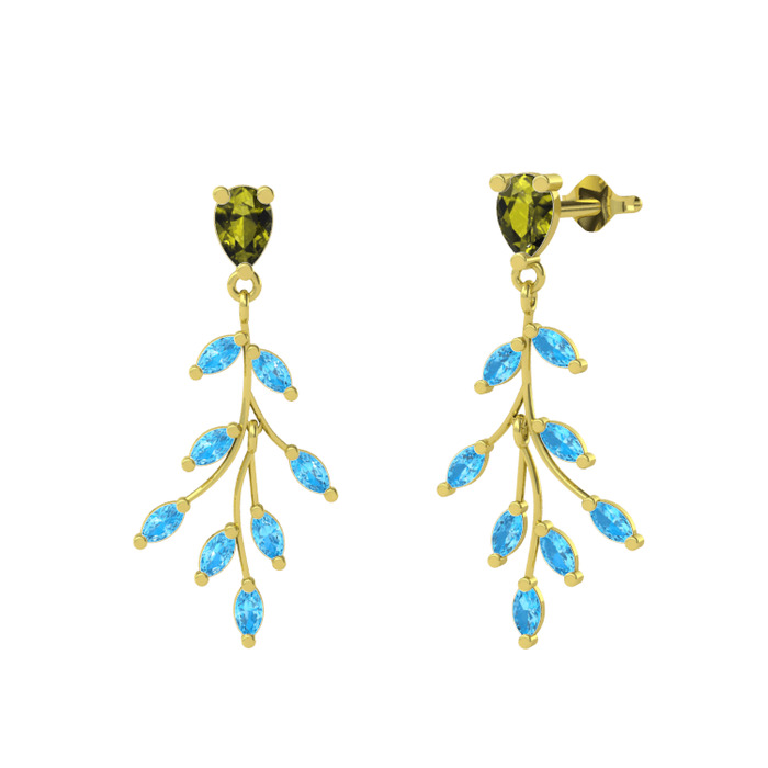 Peridot ve akuamarin 18 ayar altın küpe