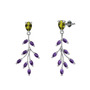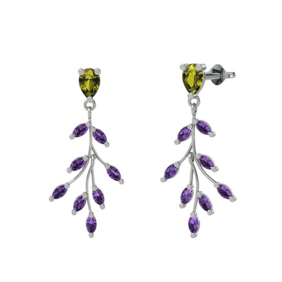 Peridot ve ametist 8 ayar beyaz altın küpe