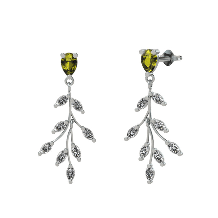 Peridot ve swarovski 14 ayar beyaz altın küpe