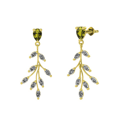 Peridot ve swarovski 925 ayar altın kaplama gümüş küpe