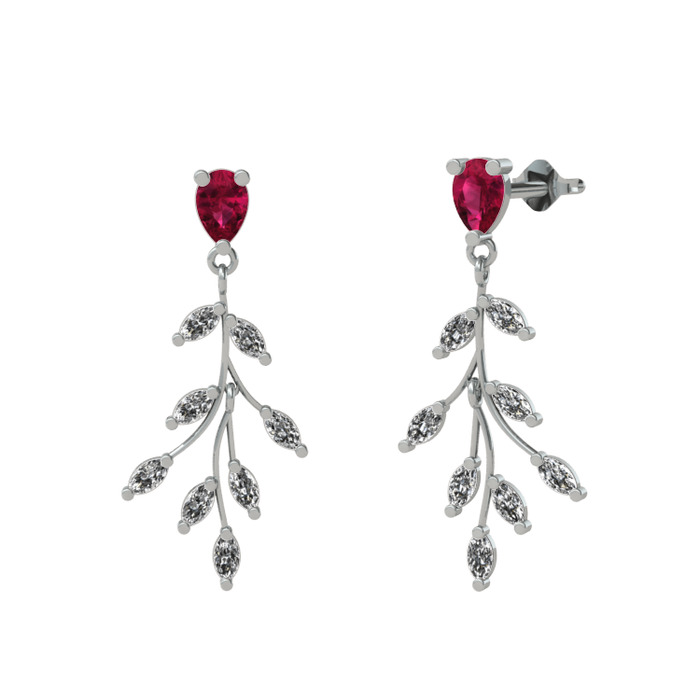 Rodolit garnet ve beyaz zirkon 14 ayar beyaz altın küpe