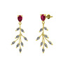 Rodolit garnet ve beyaz zirkon 8 ayar altın küpe