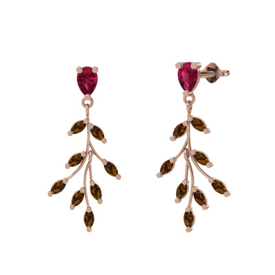Rodolit garnet ve dumanlı kuvars 14 ayar rose altın küpe