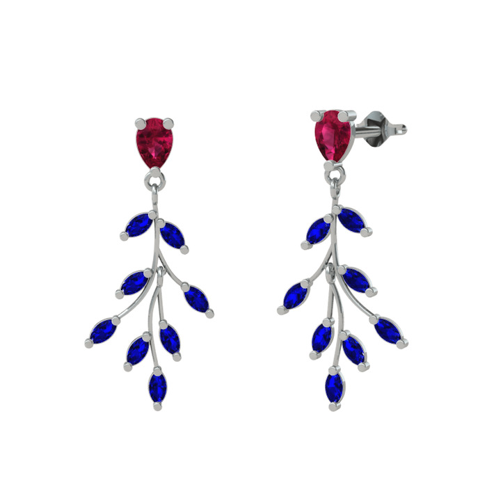 Rodolit garnet ve lab safir 14 ayar beyaz altın küpe