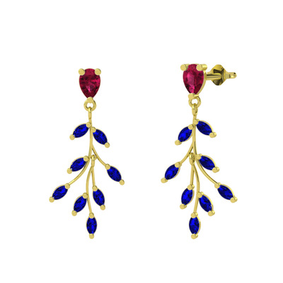 Rodolit garnet ve lab safir 925 ayar altın kaplama gümüş küpe