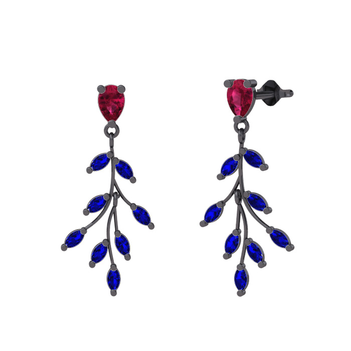 Rodolit garnet ve lab safir 925 ayar siyah rodyum kaplama gümüş küpe