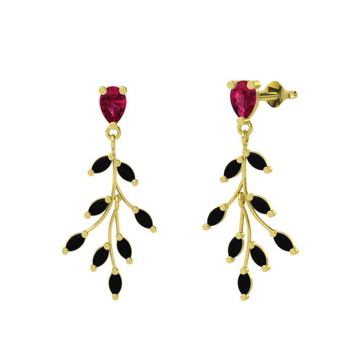 Rodolit garnet ve siyah zirkon 18 ayar altın küpe