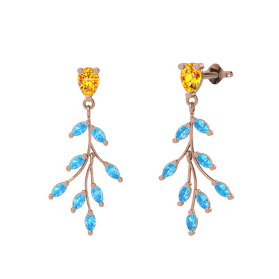 Sitrin ve akuamarin 14 ayar rose altın küpe