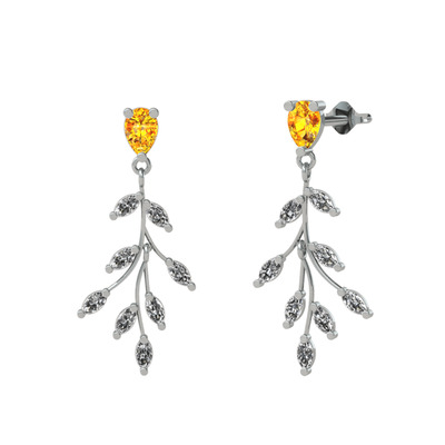 Sitrin ve beyaz zirkon 14 ayar beyaz altın küpe