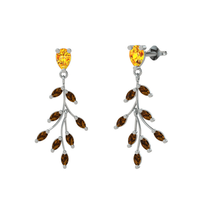 Sitrin ve dumanlı kuvars 18 ayar beyaz altın küpe