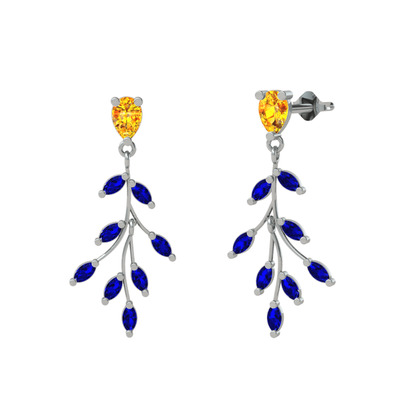 Sitrin ve lab safir 8 ayar beyaz altın küpe