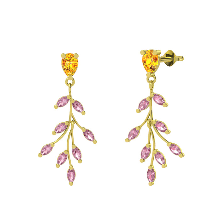 Sitrin ve pembe kuvars 925 ayar altın kaplama gümüş küpe