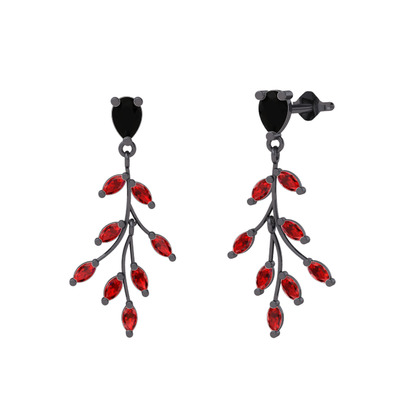 Siyah zirkon ve garnet 925 ayar siyah rodyum kaplama gümüş küpe