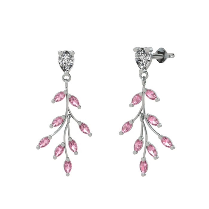 Swarovski ve pembe kuvars 18 ayar beyaz altın küpe