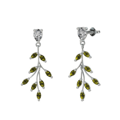 Swarovski ve peridot 18 ayar beyaz altın küpe