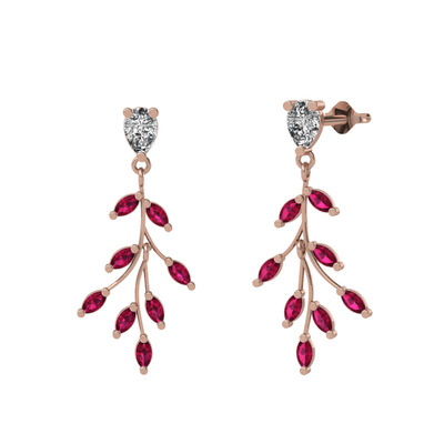 Swarovski ve rodolit garnet 925 ayar rose altın kaplama gümüş küpe