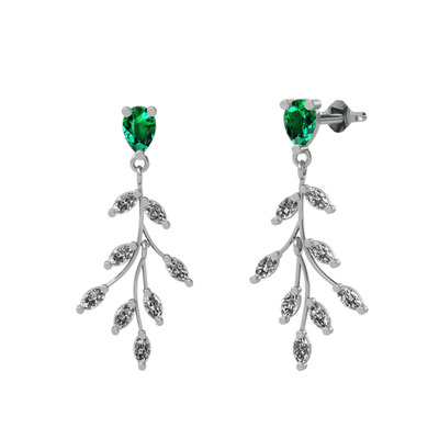 Yeşil kuvars ve beyaz zirkon 8 ayar beyaz altın küpe