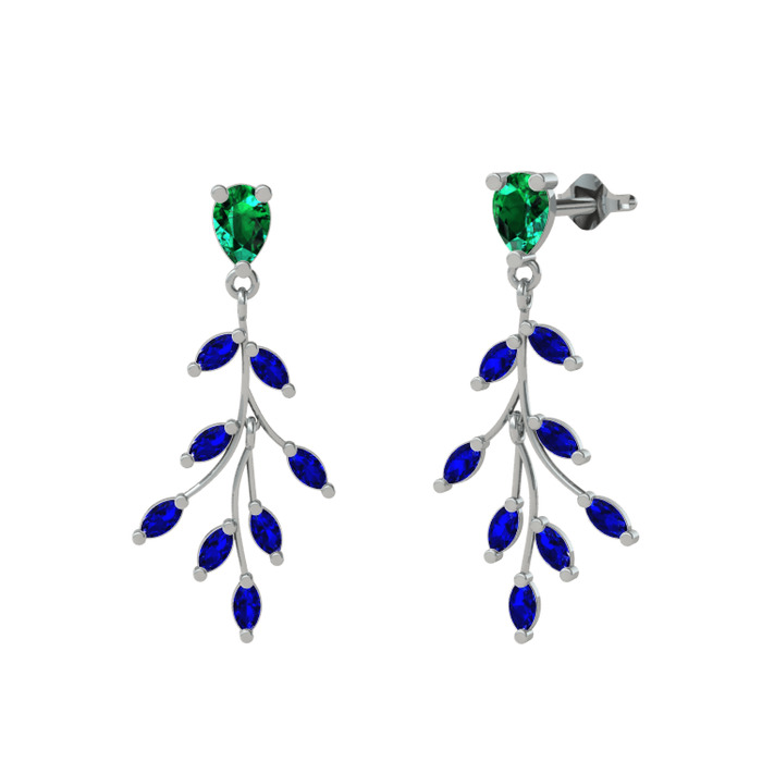 Yeşil kuvars ve lab safir 8 ayar beyaz altın küpe