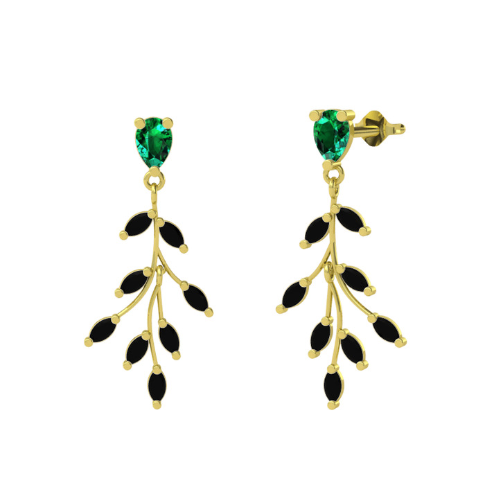 Yeşil kuvars ve siyah zirkon 8 ayar altın küpe