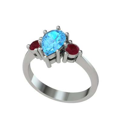 Akuamarin ve kök yakut 14 ayar beyaz altın yüzük