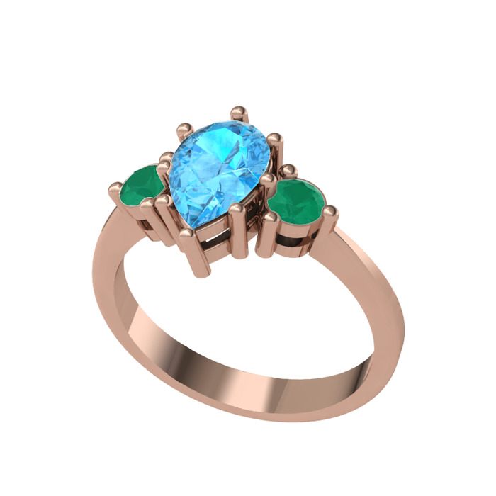 Akuamarin ve kök zümrüt 8 ayar rose altın yüzük